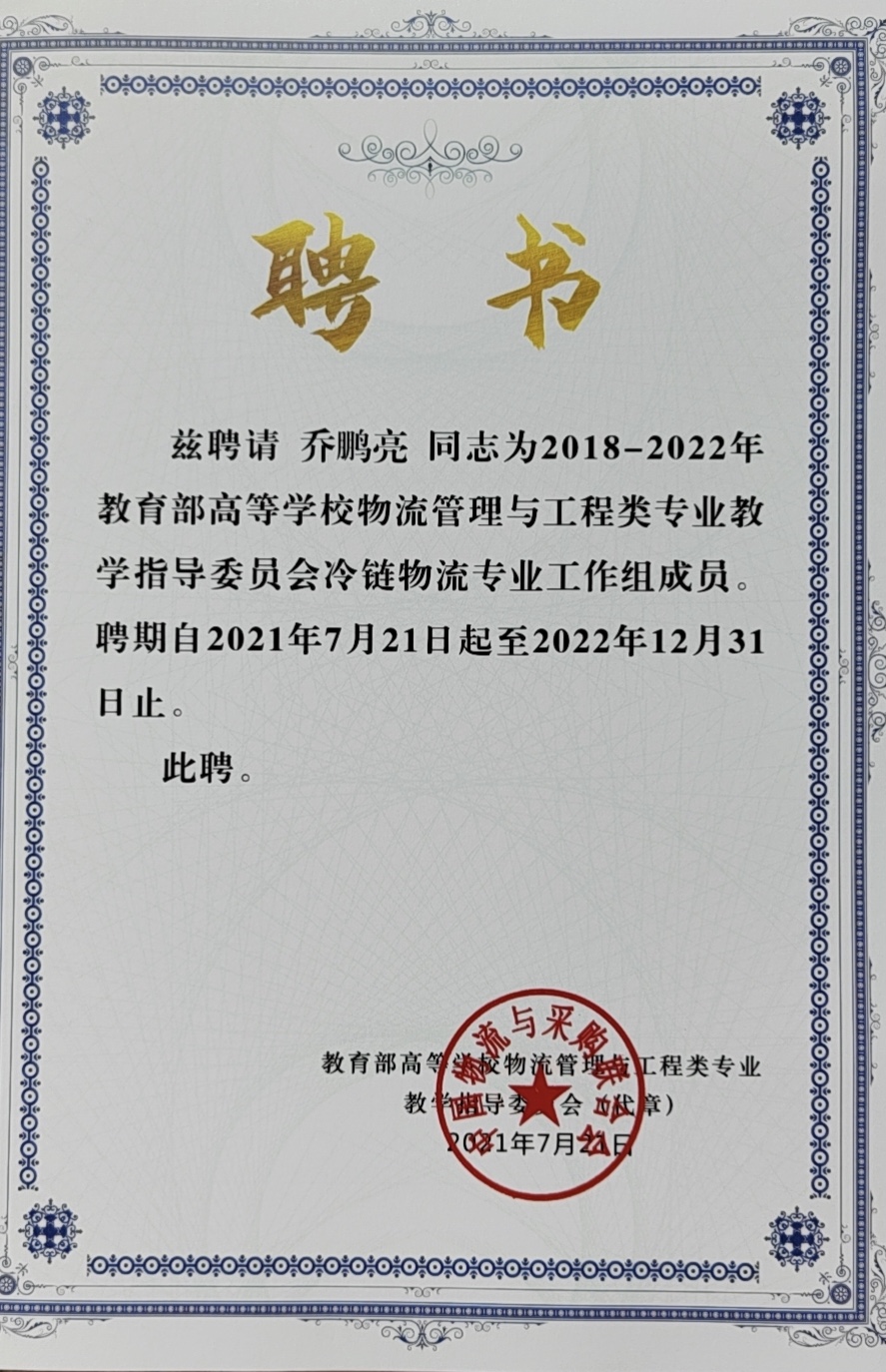 研讨会还设置第九届物流专业院长/系主任论坛—推进物流一流专业与课程思政建设、智慧物流背景下产教融合与实践教学发展论坛、第六届高校青年教师科研高峰论坛、数字供应链发展与供应链管理专业建设论坛、物流类专业新文科建设论坛等多个分论坛,来自40多个院校、行业、企业专家登台演讲。乔鹏亮教授在会议上受到高度认可,并受聘为教育部高等学校物流管理与工程类专业教学指导委员会冷链物流工作组成员,由全国物流管理与工程类专业教学指导委员会委员、冷链物流专业工作组组长、广州大学谢如鹤教授颁发聘书。乔鹏亮院长表示,该成员身份是一种肯定,更是一份责任,将为推动新时代新文科物流高等教育创新发展做出自己的贡献,同时也将更加努力加强kaiyun开云官方网站管理学院物流管理、采购管理等专业建设,提高专业影响力和知名度。(管理学院 通讯员:夏璐)