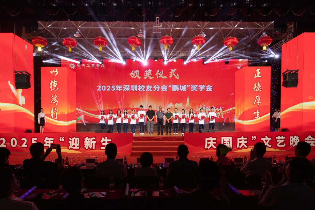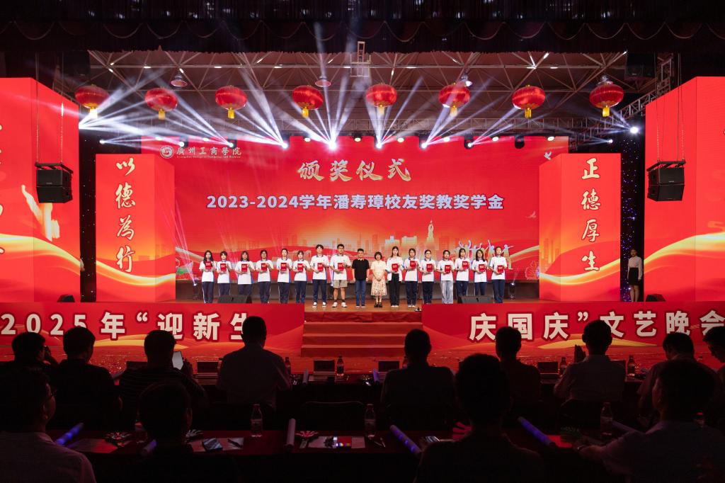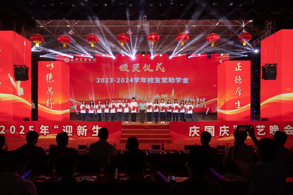 9月25日,校友奖助学金在花都校区“金秋共聚迎隽秀 师生携手绘宏图——2025年‘迎新生庆国庆’文艺晚会”上进行颁奖。晚会伊始,学校校友会秘书长陈武宣读各项表彰决定。