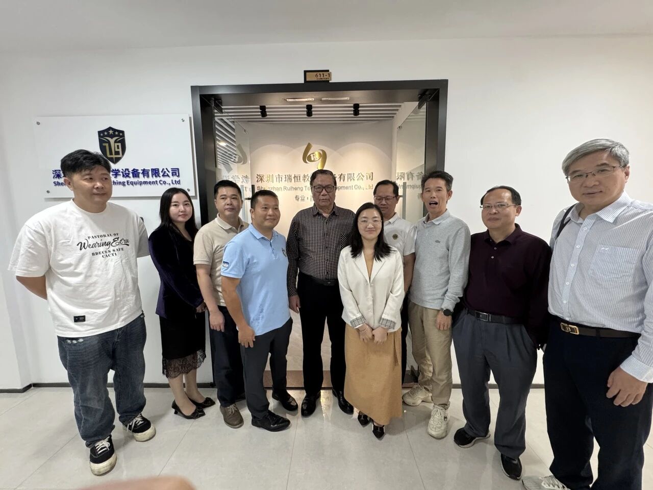 走访尾声,校企双方人员在企业园区合影留念,为本次走访交流画上圆满句号。此次走访不仅加强了学校与深圳校友的联系,为后续校庆相关工作的推进奠定了良好基础,也为校友企业与学校的进一步合作搭建了沟通桥梁。