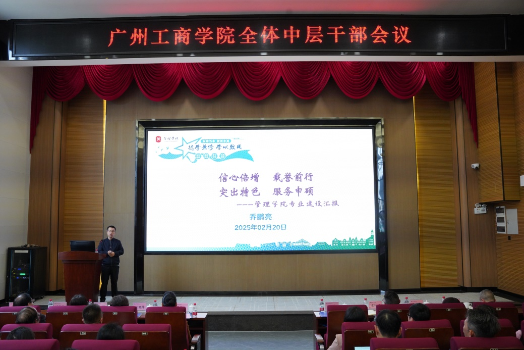 会上,董事长作“勇毅笃行,共创新辉煌”主题讲话。她充分肯定了学校2024年在党建引领、学科竞赛、教学改革等方面取得的一系列令人瞩目的成绩,尤其是学校顺利通过教育部2024年普通高校本科教学工作合格评估,是学校发展历程中的一个重要里程碑。她提出要关注三件大事,一是要深入把握《教育强国建设规划纲要(2024-2035年)》的重点任务;二是要认真贯彻落实全省高质量发展大会精神;三是DeepSeek R1推理大模型横空出世对教育的影响。她要求2025年重点做好四个方面的工作:一要做好本科教学合格评估整改工作;二要坚决打赢“申硕攻坚战”;三要狠抓教学质量,加强教风和学风建设,提升学校综合管理能力;四要扎实做好学校安全稳定工作。她特别强调,目前学校正处于新老交替、内涵发展的关键转型期,希望全体广工商人牢固树立学校发展“命运共同体”意识,深刻认识到“校兴我荣,校衰我耻”的发展大局,自觉维护学校稳定,自觉推动学校发展;同时,坚定对学校董事会的信心,坚定对学校发展的信心,坚决执行董事会的各项工作部署,发挥团结合作、责任担当精神,做到心往一处想,劲往一处使,紧紧围绕学校的发展战略目标,扎实推进各项工作任务落实。
