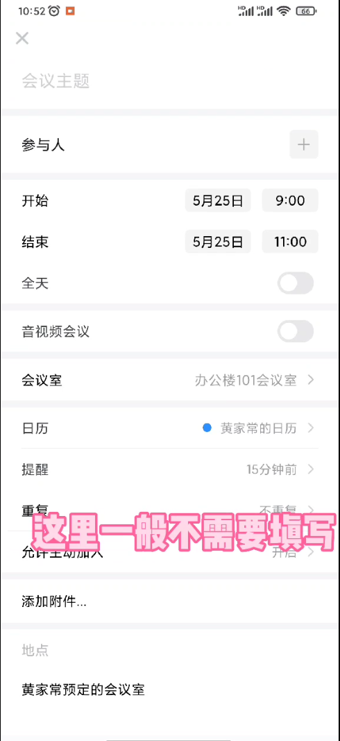 (1)选择参会人:如果人员比较多,可以只选择部分人员;会议室审批通过后,勾选的参会人也会收到会议提醒,在企业微信的日程表也会有会议记录。