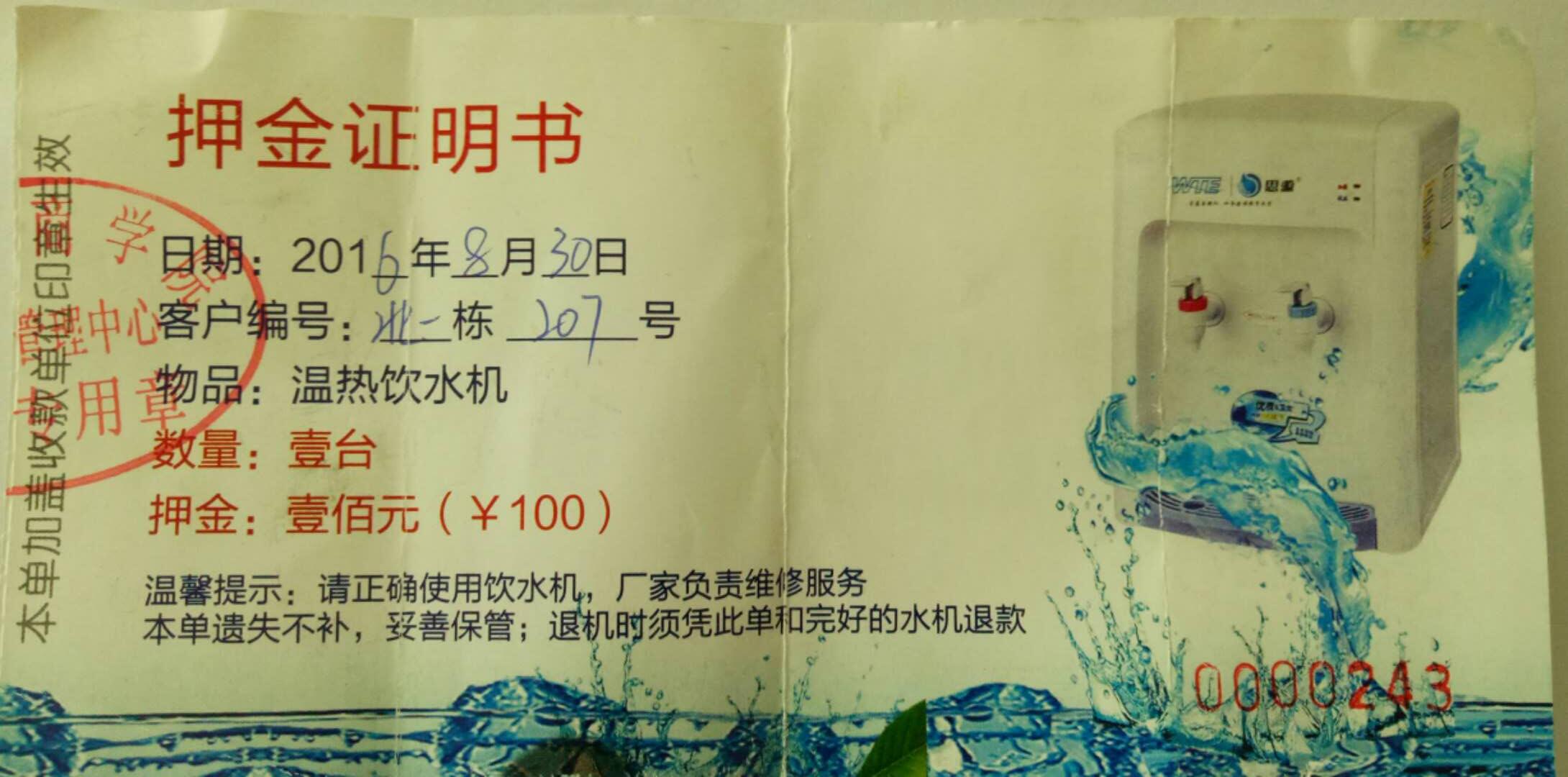 需要退押金的同学请在2018年7月5日前带上饮水机押金券,到北校区第一饭堂三楼办公室,登记资料办理手续。