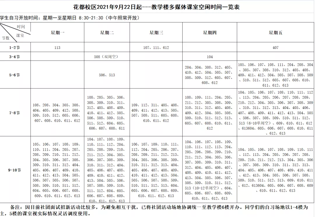 具体课室开放时间表如下: