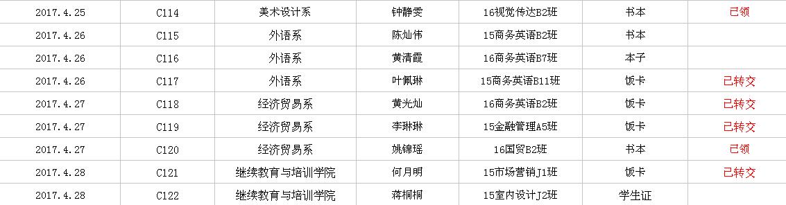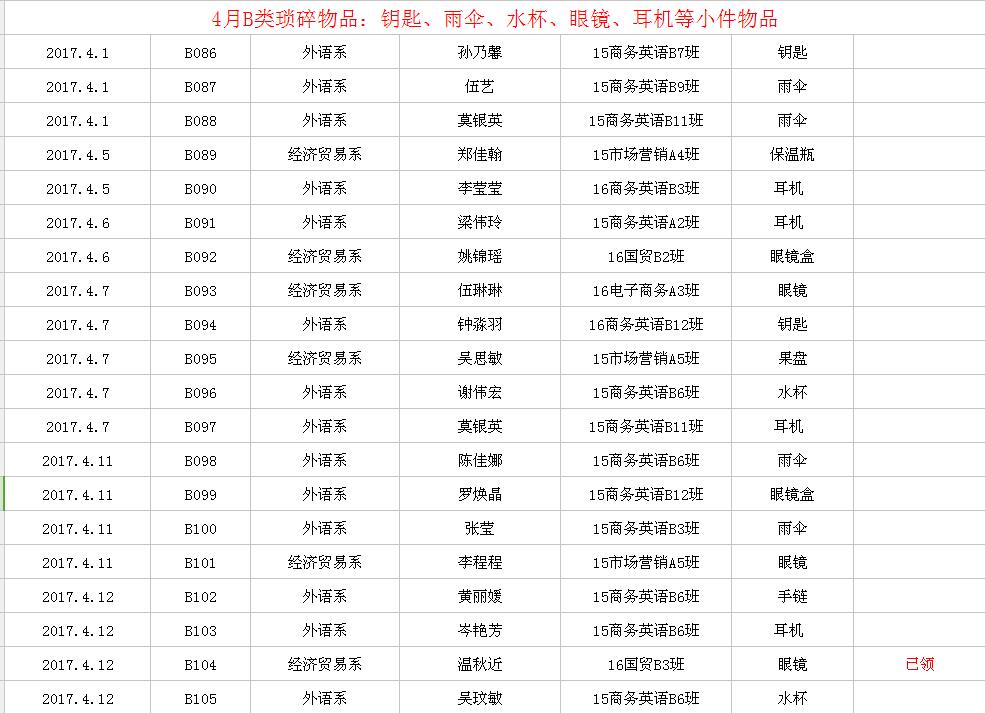 2017年4月失物招领