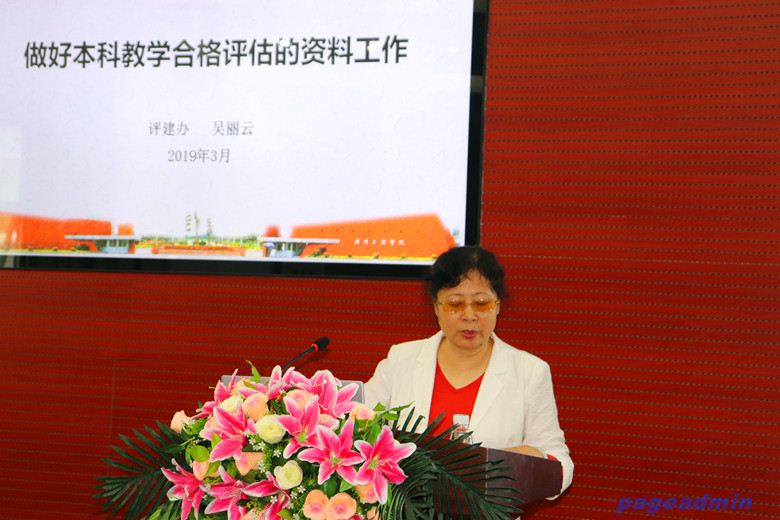 吴丽云副主任以《做好本科教学工作合格评估的资料工作》为题,围绕评估材料阐述了两个方面的内容:一是要做什么?二是要怎么做?