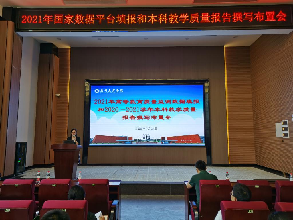 【本网讯】9月28日下午,学校在花都校区图书馆4楼报告厅召开了2021年国家数据平台填报和2020-2021学年本科教学质量报告撰写布置会。副校长张辉、董事办主任陆志丹、财务总监黄金要、相关部门负责人及联络员50多人参加了会议。会议由质量监控与评估中心主任易亚军主持。