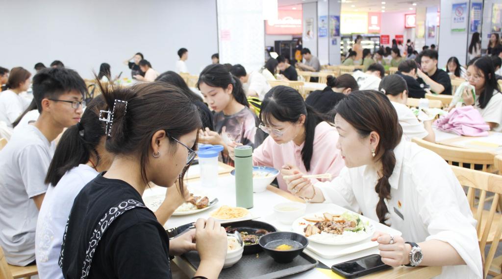 2022年10月9日中午,第一综合楼二楼气氛温馨,kaiyun招生就业办陈豫岚主任、钟丽花老师、廖惠青老师与2022级新生们共进午餐。招生官与新生面对面的交流,畅谈成长困惑、共话学校发展,使招生服务工作更具温情!